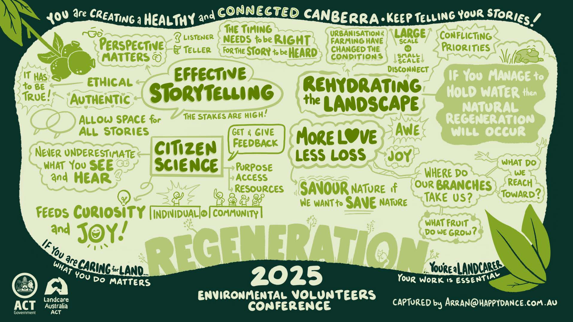 The 2025 ACT Environmental Volunteers Conference was a two-day celebration of regeneration, connection, and community action. Hosted by the ACT Government and Landcare ACT, this event brings together volunteers, community groups, experts and policymakers to share knowledge, stories and inspiration.